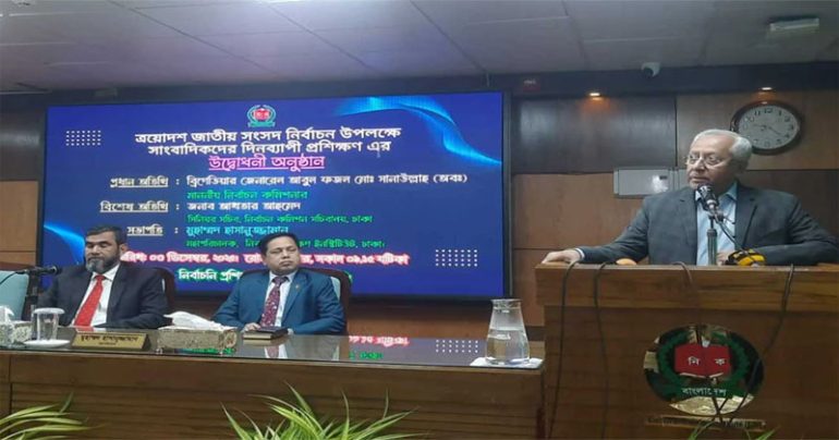 আজ বুধবার (০৩ ডিসেম্বর) রাজধানীর আগারগাঁওয়ের নির্বাচনী প্রশিক্ষণ ইনস্টিটিউটে (ইটিআই) ত্রয়োদশ জাতীয় সংসদ উপলক্ষ্যে সাংবাদিকদের প্রশিক্ষণ কর্মসূচিতে বিশেষ অতিথি হিসেবে তিনি এ কথা বলেন।