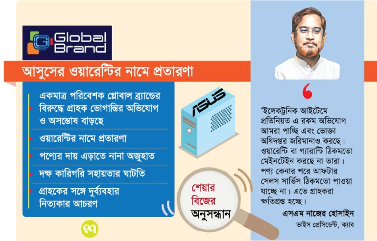 মনিরুল হক : বাংলাদেশের প্রযুক্তিপণ্যের বাজারে তাইওয়ানি ব্র্যান্ড আসুসের জনপ্রিয়তা তুঙ্গে। বিশেষ করে গেমিং পিসির ক্ষেত্রে ব্র্যান্ডটি প্রায় একক আধিপত্য ধরে রেখেছে। উচ্চমূল্যে এই ডিভাইস কিনলেও প্রত্যাশিত বিক্রয়োত্তর সেবা পাচ্ছেন না গ্রাহকরা। দেশের একমাত্র পরিবেশক গ্লোবাল ব্র্যান্ডের সেবায় নৈরাজ্য ইতোমধ্যে ভোক্তাদের কাছে ক্ষোভের কারণ হয়ে উঠেছে। ওয়ারেন্টির নামে প্রতারণা, পণ্যের দায় এড়াতে নানা অজুহাত, দক্ষ কারিগরি সহায়তার ঘাটতি এবং গ্রাহকের সঙ্গে দুর্ব্যবহার এখন নিত্যকার বাস্তবতা। শেয়ার বিজ-এর অনুসন্ধানে একাধিক ভুক্তভোগীর অভিজ্ঞতায় সেই চিত্র আরও স্পষ্ট ওয়ে ওঠে।