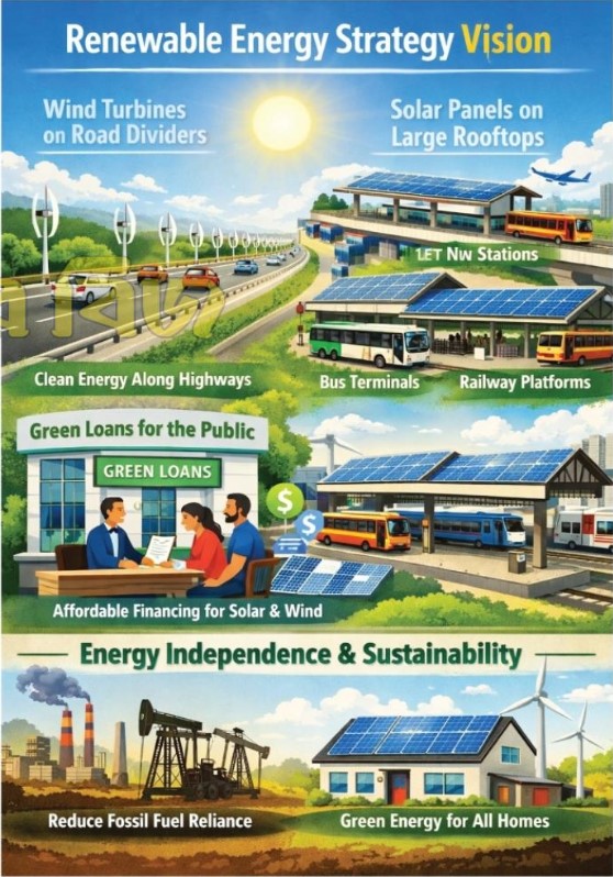 পাশের দেশ ভারতের কেরালার কোচি বিমানবন্দরের উদাহরণ দেওয়া যেতে পারে, যেটি বিশ্বের প্রথম সম্পূর্ণ সৌরবিদ্যুৎ চালিত বিমানবন্দর। তুরস্ক এবং নেদারল্যান্ডসের মতো দেশগুলো আরও এক ধাপ এগিয়ে হাইওয়ের রাস্তার ডিভাইডারে বায়ুকল বা উইন্ড টারবাইন বসিয়েছে। অর্থাৎ, নবায়নযোগ্য শক্তি এখন আর কোনো বিলাসী বা পরীক্ষামূলক বিষয় নয়, এটি টিকে থাকার প্রধান হাতিয়ার।