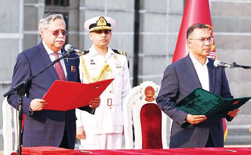 নিজস্ব প্রতিবেদক : প্রথমবারের মতো প্রধানমন্ত্রী হিসেবে শপথ নিলেন বাংলাদেশ জাতীয়তাবাদী দলের (বিএনপি) চেয়ারম্যান তারেক রহমান। গতকাল মঙ্গলবার জাতীয় সংসদের দক্ষিণ প্লাজায় তাকে শপথবাক্য পাঠ করান রাষ্ট্রপতি মো. সাহাবুদ্দিন। পরে রাষ্ট্রপতি ৪৯ সদস্যের মন্ত্রিসভার সদস্যদের শপথবাক্য পাঠ করান। এ শপথের মাধ্যমে আনুষ্ঠানিকভাবে শুরু হলো নতুন সরকারের পথচলা। দীর্ঘ প্রতিক্ষার পর দেশ পেল গণতান্ত্রিকভাবে নির্বাচিত একটি সরকার। শহীদ রাষ্ট্রপতি জিয়াউর রহমান এবং প্রয়াত প্রধানমন্ত্রী বেগম খালেদা জিয়ার জ্যেষ্ঠ পুত্র রহমানের নেতৃত্বে গঠিত মন্ত্রিসভায় ২৫ জন মন্ত্রী এবং ২৪ জন প্রতিমন্ত্রী রয়েছেন।