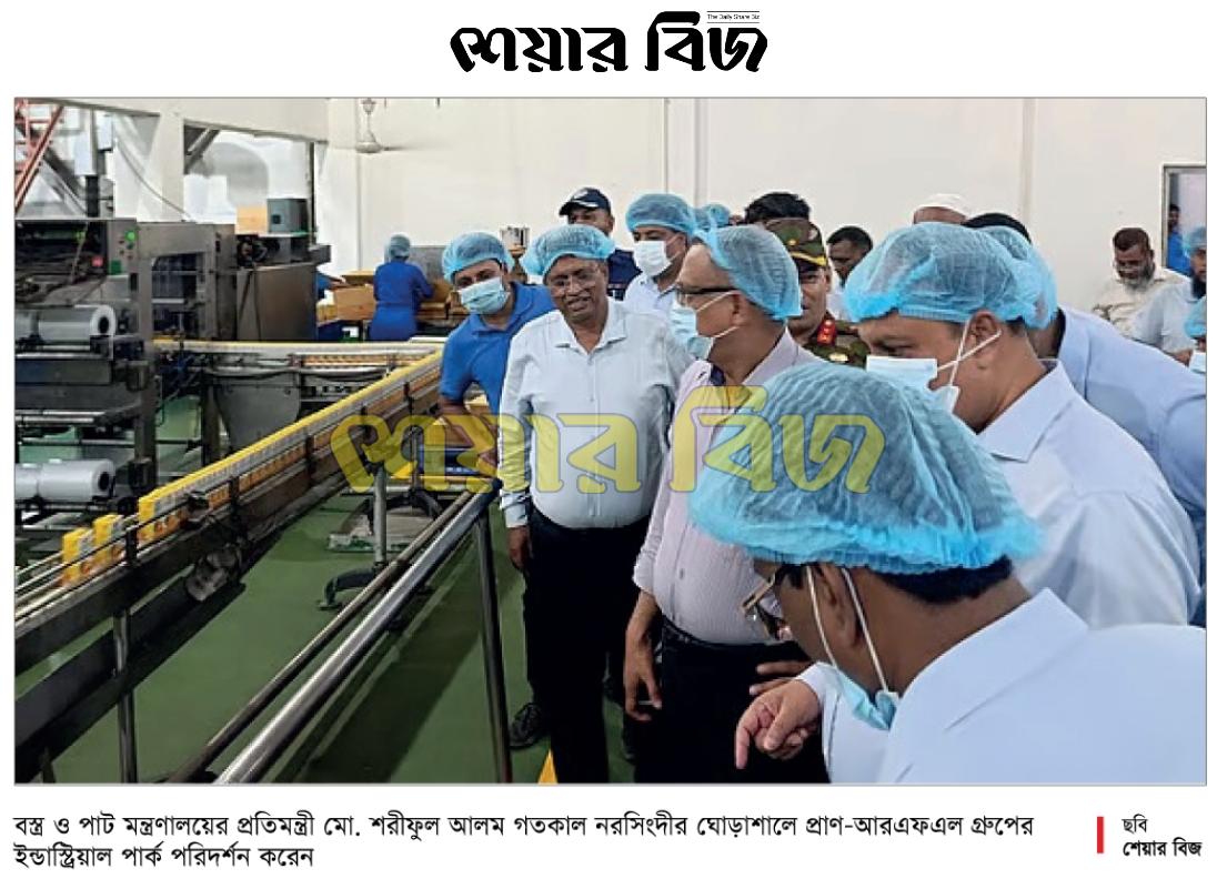 এ সময় শরীফুল আলম ভোগ্যপণ্য উৎপাদন, কর্মসংস্থান সৃষ্টি, পণ্য রপ্তানির মাধ্যমে দেশের অর্থনীতি সচল রাখার ক্ষেত্রে প্রাণ-আরএফএল গ্রুপের ভূয়সী প্রশংসা করেন।