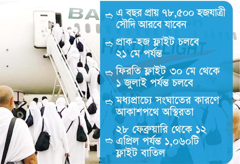 এই শঙ্কার মধ্যেই আজ রাতে চলতি বছরের হজ ফ্লাইট কার্যক্রম উদ্বোধন করবেন প্রধানমন্ত্রী তারেক রহমান। বেসামরিক বিমান পরিবহন ও পর্যটন মন্ত্রণালয় জানিয়েছে, শুক্রবার রাত ১১টা ৩০ মিনিটে প্রধানমন্ত্রী আনুষ্ঠানিকভাবে হজ ফ্লাইট কার্যক্রমের উদ্বোধন করবেন। মন্ত্রণালয়ের এক বিবৃতিতে বলা হয়, সম্প্রসারিত ফ্লাইটসূচি ও ভাড়া কমানোর উদ্যোগসহ সব প্রস্তুতি সম্পন্ন হওয়ার পর হজ ফ্লাইট শুরু হচ্ছে।