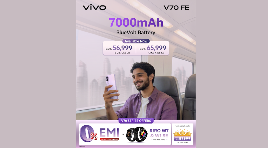ভিভো জানায়, ভি৭০ সিরিজ মূলত ভ্রমণপ্রেমী ও কনটেন্ট ক্রিয়েটরদের জন্য ডিজাইন করা হয়েছে, যাতে তারা চার্জের চিন্তা ছাড়াই দীর্ঘ সময় স্মার্টফোন ব্যবহার করতে পারেন।
