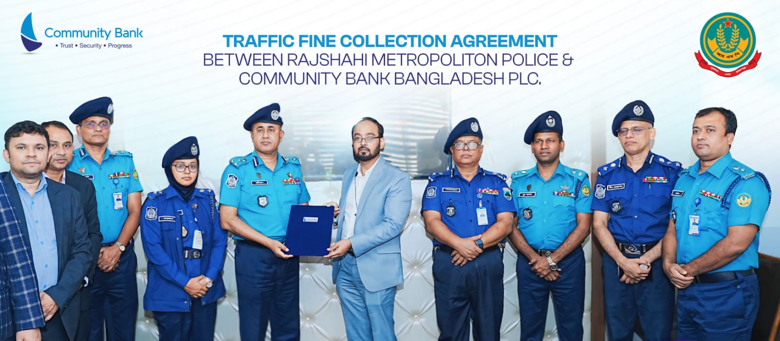 বৃহস্পতিবার (২৫ সেপ্টেম্বর ২০২৫) বিকেল ৪টায় রাজশাহীর গ্র্যান্ড রিভারভিউ চাইনিজ রেস্টুরেন্টের সম্মেলন কক্ষে এ দ্বিপাক্ষিক চুক্তি স্বাক্ষরিত হয়। চুক্তি বিনিময় করেন রাজশাহী মেট্রোপলিটন পুলিশের কমিশনার আবু সুফিয়ান এবং কমিউনিটি ব্যাংকের ব্যবস্থাপনা পরিচালক (চলতি দায়িত্ব) কিমিয়া সাআদত। এ সময় উপস্থিত ছিলেন রাজশাহী রেঞ্জের ডিআইজি মোহাম্মদ শাহজাহান, পিপিএম (বার), পিএইচডি।