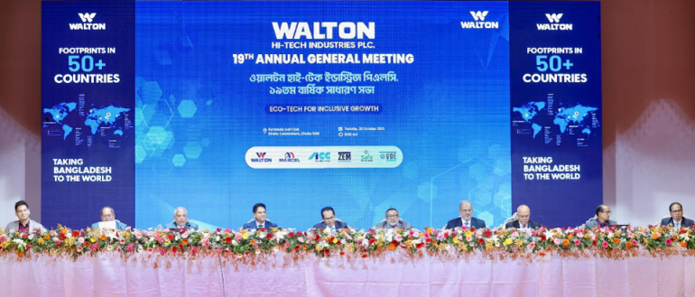 ওয়ালটন হাই-টেক ইন্ডাস্ট্রিজ পিএলসি’র ১৯তম বার্ষিক সাধারণ সভা রাজধানীর কুর্মিটোলা গলফ ক্লাবে মঙ্গলবার (২৮ অক্টোবর, ২০২৫) হাইব্রিড পদ্ধতিতে অনুষ্ঠিত হয়।