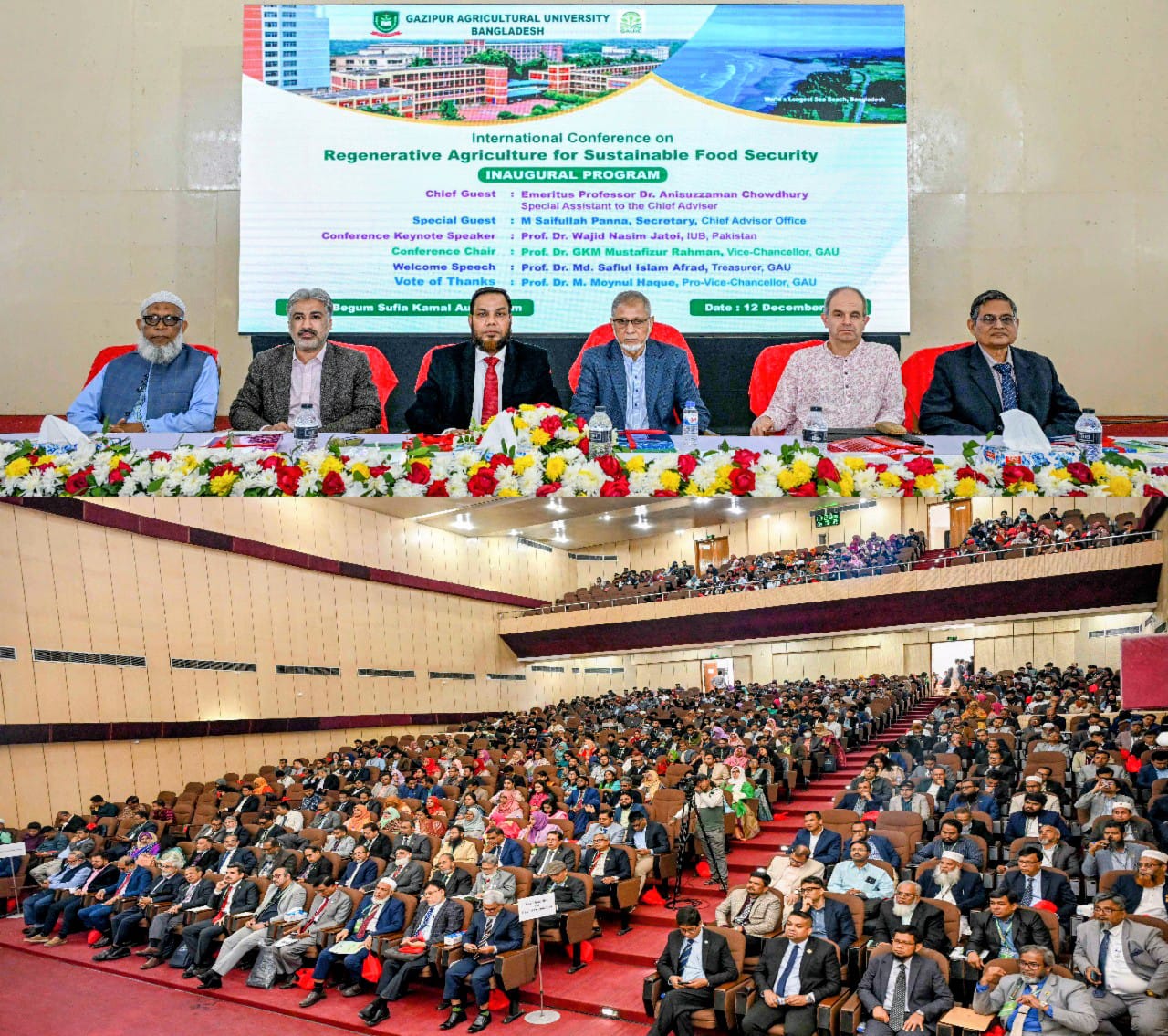 মুকতা বেগম, গাজীপুর : গাজীপুর কৃষি বিশ্ববিদ্যালয়ে (গাকৃবি) প্রথমবারের মতো শুরু হয়েছে দুই দিনব্যাপী আন্তর্জাতিক সম্মেলন রিজেনারেটিভ এগ্রিকালচার ফর সাসটেইনেবল ফুড সিকিউরিটি ২০২৫। যার লক্ষ্য বিশ্বব্যাপী গবেষণা, উদ্ভাবন ও অভিজ্ঞতার সমন্বয়ে টেকসই খাদ্য নিরাপত্তার ভবিষ্যৎ রূপরেখা তৈরি।