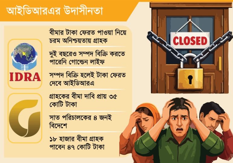 দেশজুড়ে ছড়িয়ে থাকা গোল্ডেন লাইফের গ্রাহকরা এখন বীমার টাকা পাওয়া নিয়ে চরম অনিশ্চয়তার মধ্যে রয়েছেন। প্রতিষ্ঠানটির পক্ষ থেকে আশ্বাস মিললেও নির্দিষ্ট সময়সীমা বা কার্যকর পদক্ষেপের অভাব তাদের আস্থার সংকটে ফেলেছে।