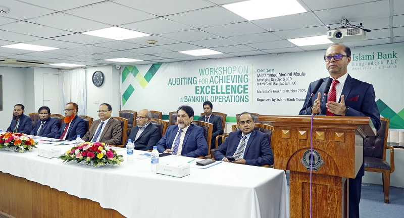 ইসলামী ব্যাংক ট্রেনিং অ্যান্ড রিসার্চ একাডেমির (আইবিটিআরএ) উদ্যোগে ‘অডিটিং ফর অ্যাচিভিং এক্সিলেন্স ইন ব্যাংকিং অপারেশন্স’ শীর্ষক দিনব্যাপী কর্মশালা গতকাল ইসলামী ব্যাংক টাওয়ারে অনুষ্ঠিত হয়। ব্যাংকের ব্যবস্থাপনা পরিচালক মুহাম্মদ মুনিরুল মওলা প্রধান অতিথি হিসেবে কর্মশালা উদ্বোধন করেন। আইবিটিআরএ’র অধ্যক্ষ মো. নজরুল ইসলামের সভাপতিত্বে কর্মশালার বিভিন্ন সেশন পরিচালনা করেন ব্যাংকের এএমডি মো. আলতাফ হুসাইন, ডিএমডি মো. নাইয়ার আজম, ইভিপি মোহাম্মদ ইয়াকুব আলী, মো. রাজা মিয়া, নাজমুস সাকিব মো. রেজাউর রহমান ও মোহাম্মদ নেয়ামত উল্লাহ। ব্যাংকের অডিট অ্যান্ড ইনস্পেকশন ডিভিশনের ১০০ জন কর্মকর্তা কর্মশালায় অংশ নেন। বিজ্ঞপ্তি