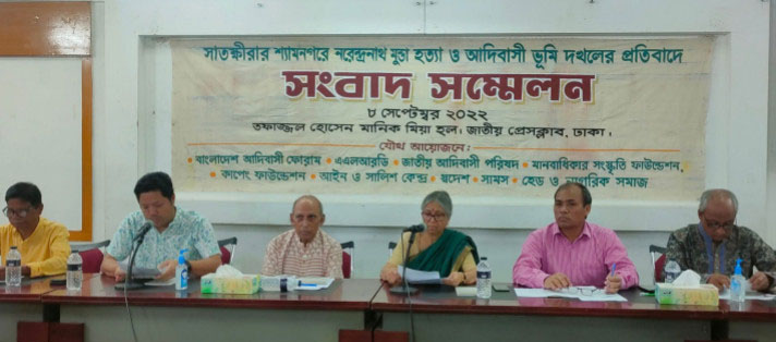 গতকাল বৃহস্পতিবার জাতীয় প্রেস ক্লাবে সংবাদ সম্মেলনে এসব কথা বলেন সুলতানা কামাল। ‘সাতক্ষীরার শ্যামনগরে নরেন্দ্রনাথ মুণ্ডা হত্যা ও আদিবাসী ভূমি দখলের প্রতিবাদে’ যৌথভাবে এ সংবাদ সম্মেলন করে বাংলাদেশ আদিবাসী ফোরাম, এএলআরডি, জাতীয় আদিবাসী পরিষদ, মানবাধিকার সংস্কৃতি ফাউন্ডেশন, কাপেং ফাউন্ডেশন, আইন ও সালিশ কেন্দ্র, স্বদেশ, সামস, হেগ ও নাগরিক সমাজ। গত ১৯ আগস্ট মুণ্ডা জাতিগোষ্ঠীর নরেন্দ্রনাথ মণ্ডা দুষ্কৃতকারীদের হামলায় আহত হন। পরদিন তিনি মারা যান।