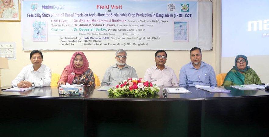 প্রতিনিধি, গাজীপুর: বাংলাদেশ কৃষি গবেষণা ইনস্টিটিউটের (বারি) সেচ ও পানি ব্যবস্থাপনা বিভাগের উদ্যোগে বাংলাদেশে টেকসই ফসল উৎপাদনের জন্য আইওটি-ভিত্তিক নির্ভুল কৃষির সম্ভাব্যতা অধ্যয়নের জন্য মাঠ পরিদর্শন কার্যক্রম অনুষ্ঠিত হয়েছে। গতকাল মঙ্গলবার ইনস্টিটিউটের এফএমপিই বিভাগের সেমিনার কক্ষে কার্যক্রম অনুষ্ঠিত হয়। কৃষি গবেষণা ফাউন্ডেশন (কেজিএফ), বাংলাদেশ-এর অর্থায়নে বাংলাদেশ কৃষি গবেষণা কাউন্সিলের (বিএআরসি) সমন্বয়ে, সেচ ও পানি ব্যবস্থাপনা বিভাগ, বারি, গাজীপুর ও নোডিস ডিজিটাল লিমিটেড, ঢাকা এ প্রকল্প বাস্তবায়ন করছে। বারি’র বিভিন্ন বিভাগ/কেন্দ্রের বিজ্ঞানী, বিএআরসি এবং নোডিস ডিজিটাল লিমিটেড, ঢাকার প্রতিনিধিরা অনুষ্ঠানে অংশগ্রহণ করেন।
