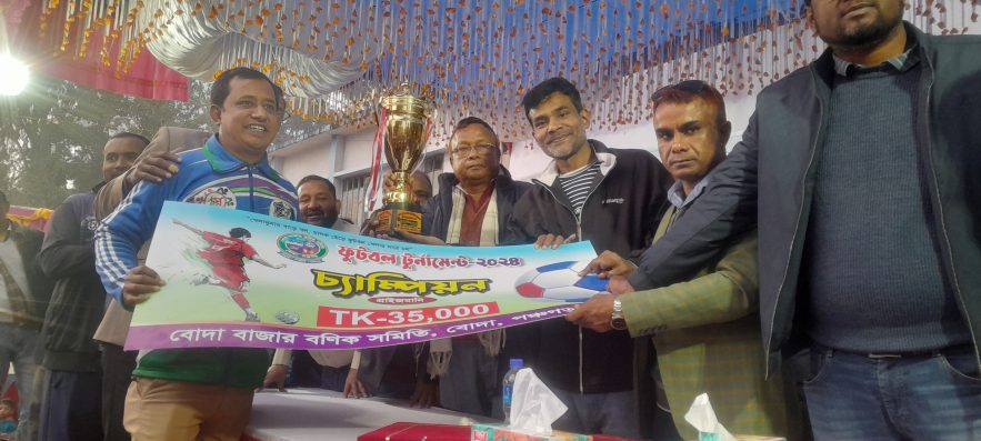 বোদা বাজার বনিক সমিতির সভাপতি মোঃ ফিরোজ আলম চৌধুরীর সভাপতিত্বে পুরস্কার বিতরণী সভায় অন্যান্যের মধ্যে বক্তব্য রাখেন বনিক সমিতির সদস্য আবু জাভেদ মজুমদার খসরু। এসময় উপস্থিত ছিলেন বনিক সমিতির সদস্য আশরাফুল ইসলাম, রিজভী, হুদা, ফরিদ হোসেন, বোদা উপজেলা বিএনপির যুগ্ম আহবায়ক আব্দুল মান্নান, ইউনিয়ন পরিষদ চেয়ারম্যান অখিল চন্দ্র ঘোষ শিষা ও উপজেলা ছাত্রদলের আহবায়ক সোহেল রানা। বিপুল সংখ্যক দর্শক মাঠের চারপাশে দাড়িয়ে খেলা উপভোগ করেন।