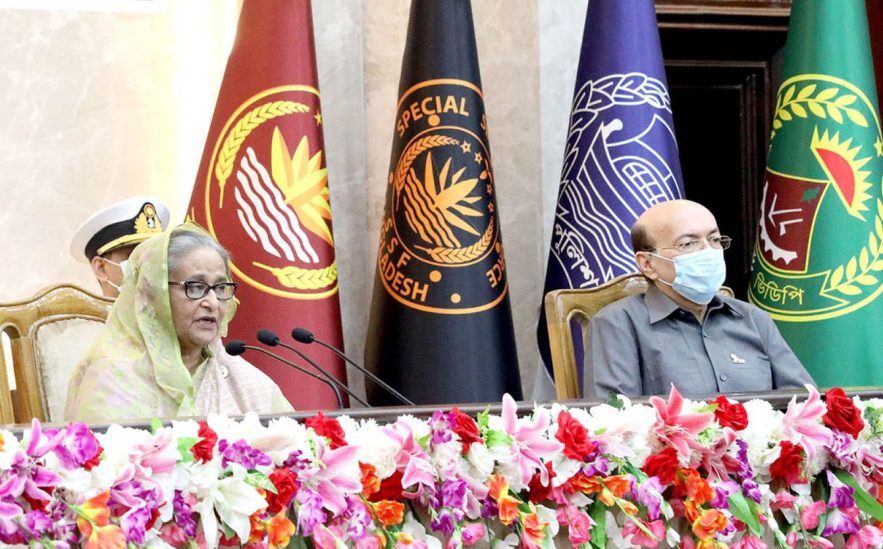 সন্ত্রাস ও জঙ্গিবাদ দমনে আইন-শৃঙ্খলা রক্ষাকারী বাহিনীর ভূমিকার প্রশংসা করে অনুষ্ঠানে প্রধানমন্ত্রী শেখ হাসিনা বলেন, ‘আল্লাহর রহমতে আমি বলব, আমাদের প্রত্যেকটা বাহিনী এত সজাগ-সচেতন যে, একটা দুর্ঘটনা ঘটেছিল, তার পর থেকে আমাদের গোয়েন্দা সংস্থা আমাদের প্রত্যেকটা বাহিনী সেনা-নৌ-বিমানবাহিনী, পুলিশ বাহিনী, র্যাব বা আনসার, ভিডিপি, আমাদের বিজিবি প্রত্যেকেই কিন্তু দায়িত্ব পালন করেছে। যার ফলে মনে রাখতে হবে, যখনই আমরা এগিয়ে যাই, তখনই কিন্তু নানা ধরনের ঘটনা ঘটানোর চেষ্টা কোনো কোনো মহল করে থাকে।’