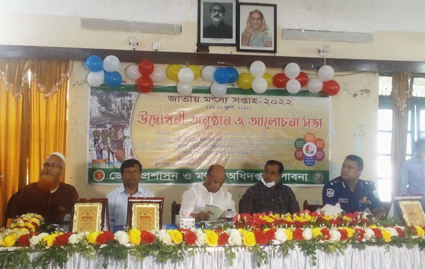 প্রতিনিধি, পাবনা : ২৩-২৯ জুলাই, ২০২২ সাত দিনব্যাপী জাতীয় মৎস্য সপ্তাহের শুরু হয়েছে। এর অংশ হিসেবে আজ রোববার সকাল ১০টায় পাবনা জেলা প্রশাসন ও জেলা মৎস্য অধিদপ্তরের আয়োজনে জেলা পরিষদের সম্মেলন কক্ষে মৎস্য সপ্তাহের উদ্বোধনী অনুষ্ঠান ও আলোচনা সভা অনুষ্ঠিত হয়।