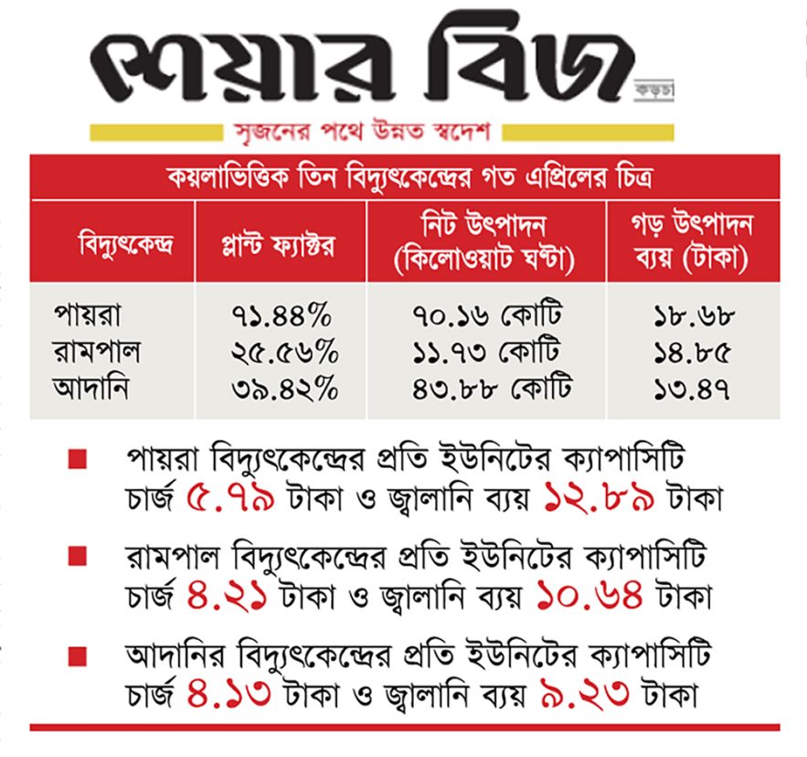 পায়রা-রামপালের চেয়ে আদানির বিদ্যুৎ উৎপাদন ব্যয় ছিল কম
