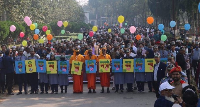 কর্মসূচি উদ্বোধন শেষে মৃত্যুঞ্জয়ী মুজিব ম্যুরাল চত্বর থেকে একটি র‍্যালি বের হয় তা ক্যাম্পাসের প্রধান-প্রধান সড়ক প্রদক্ষিণ করে বাংলা মঞ্চে শেষ হয়। এসময় বিভিন্ন বিভাগ, সমিতি, হল ও সংগঠনের ব্যনারে বিশ্ববিদ্যালয়ের সকল পর্যায়ের শিক্ষক, কর্মকর্তা, কর্মচারী ও শিক্ষার্থীবৃন্দ উপস্থিত ছিলেন।