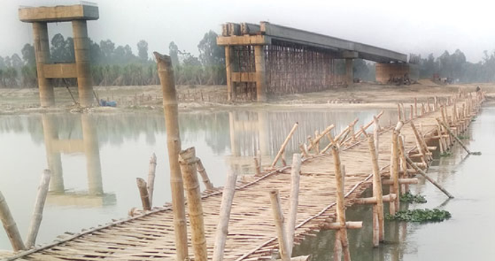 বাঁশের সাঁকোতে পারাপার দুই উপজেলার মানুষের