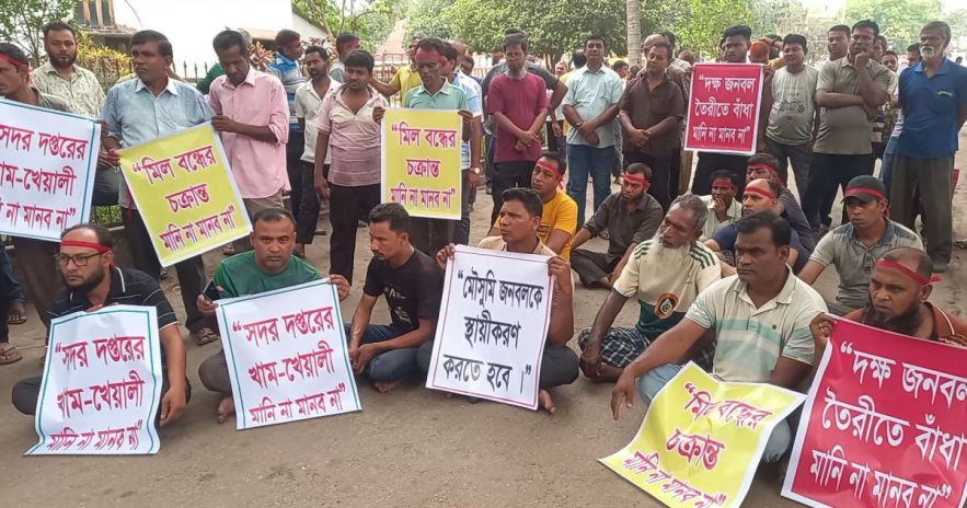 গতকাল বুধবার দুপুর ১২টায় সুগার মিলের প্রশাসনিক ভবনের সামনে তারা এই কর্মসূচি পালন করেন। পরে শ্রমিক ও কর্মচারী ইউনিয়নের নেতাদের সঙ্গে দুই ঘণ্টাব্যাপী বৈঠক করেন মিলের ব্যবস্থাপনা পরিচালক মোহাম্মদ ফরিদ হোসেন ভূঁইয়া।