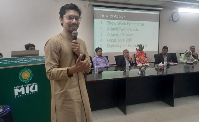 মানারাত ইন্টারন্যাশনাল ইউনিভার্সিটিতে “বুলুপ্রিন্ট ফর ইউিনিভার্সিটি লাইফ” শীর্ষক সেমিনার অনুষ্ঠিত হয়েছে। রোববার (৫ মার্চ) সকালে বিশ্ববিদ্যালয়ের গুলশানস্থ সভাকক্ষে মনজ্ঞো এ সেমিনার অনুষ্ঠিত হয়। এমআইইউ বিজনেস ক্লাব আয়োজিত এ সেমিনারে অতিথি আলোচক ছিলেন বিশিষ্ট ইউটিউবার, অনলাইন এডুকেটর ও ইন্টারনেট ব্যক্তিত্ব সাদমান সাদিক।