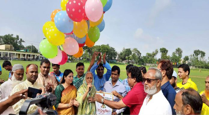 পরে জাতীয় সংগীত পরিবেশনের মধ্য দিয়ে প্রধান অতিথি সংসদ সদস্য বারেয়া আলীম জাতীয় পতাকা উত্তোলন করেন। এরপর বেলুন ও কবুতর উড়িয়ে টুর্নামেন্টের উদ্বোধন করা হয়। এর আগে প্রধান অতিথি টুর্নামেন্টের উদ্বোধনী খেলায় অংশগ্রহণকারী ফুটবল দলের খেলোয়াড়দের সঙ্গে পরিচিত হন ও শুভেচ্ছা বিনিময় করেন।