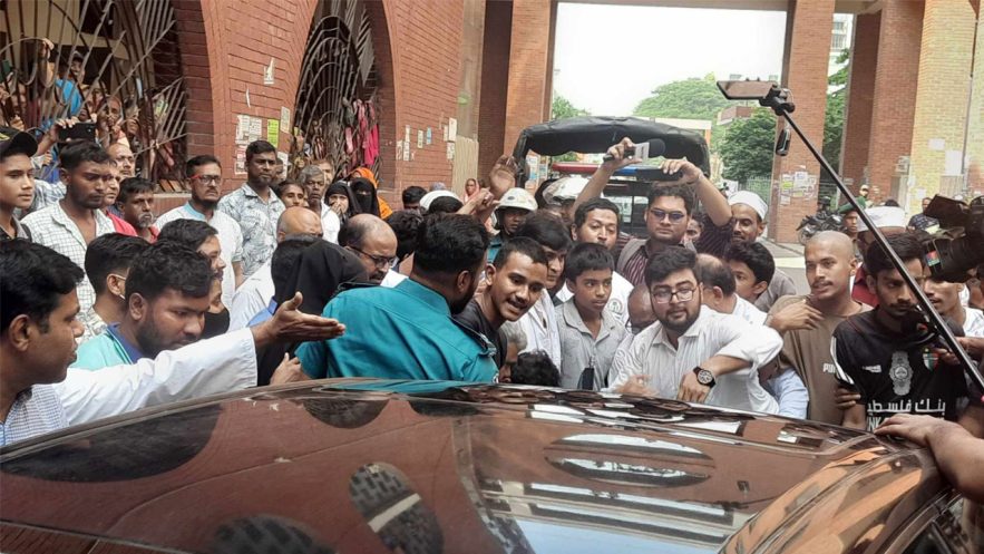 এক পর্যায়ে আন্দোলনে আহতদের একজন গাড়ির সামনে বসে পড়েন। আরেকজন উঠে পড়েন গাড়ির ওপর। কিছু সময় তারা গাড়িতে কিল-ঘুষি মেরে ক্ষোভ দেখাতে থাকেন। নেমে আসতে বলেন গাড়ির চালকসহ অন্যদের। নিরূপায় হয়ে স্বাস্থ্য উপদেষ্টা ও ব্রিটিশ রাষ্ট্রদূত অন্য একটি গাড়িতে করে সেখান থেকে বেরিয়ে যান। পরে আহতরা স্বাস্থ্য মন্ত্রণালয়ের ওই গাড়ি ও প্রটোকলে থাকা পুলিশের একটি গাড়ি আটকে দেযন এবং রাস্তায় অবস্থান নেন। এখন (দুপুর ২টা) পর্যন্ত আগারগাঁও থেকে শ্যামলীমুখী সড়ক বন্ধ রয়েছে।