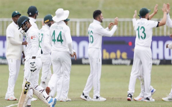 ২৭৪ রানের লক্ষ্য তাড়ায় চতুর্থ দিনের শেষ বিকেলে ১১ রান তুলতেই ৩ উইকেট হারায় অতিথিরা। হাতে ৭ উইকেট রেখে সোমবার আরও ২৬৩ রান তুলতে অভাবিত কিছু করতে হতো বাংলাদেশকে। কিন্তু মাত্র ৫৩ রানে গুটিয়ে যায় টাইগারদের ইনিংস। ফলে দুই ম্যাচ টেস্ট সিরিজে ১-০ ব্যবধানে এগিয়ে গেল স্বাগতিকরা।